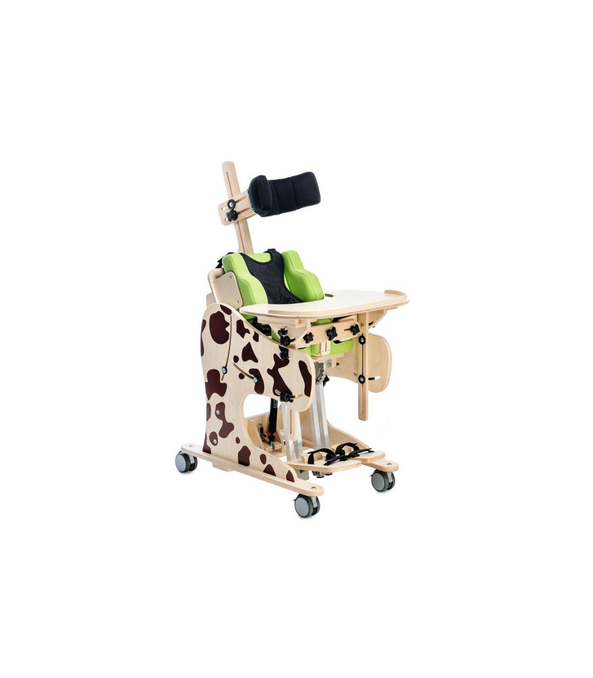 Se utiliza como una silla de rehabilitación en la fase de sedestación y más tarde como un bipedestador estático, que está equipado con un pistón de gas para ponerlo en posición vertical sin sacar al niño de la silla. También se puede poner en posición horizontal. La bipedestación se puede realizar de 0º a 90º.